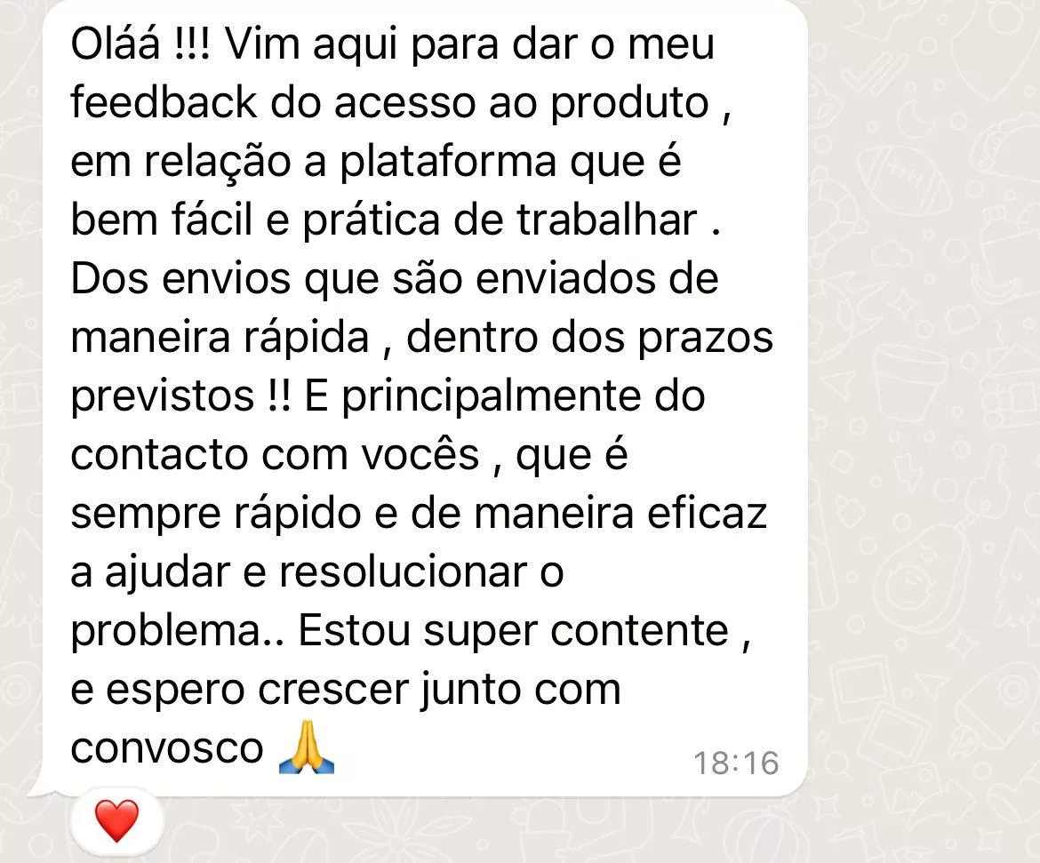 Não teria conseguido fazer isso se não começa-se a vender produtos, encontrando fornecedores certos, e pouco a pouco somando todos os dias para chegar onde estou hoje. E hoje quero dar a você a mesma oportunidade que eu tive lá no começo…